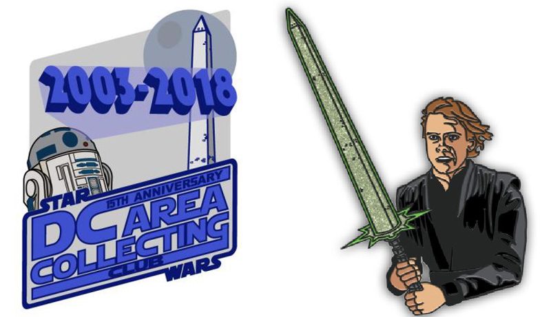 The Washington DC Metro Area Star Wars Collecting Club (DCSWCC) wishes to announce their eighth biannual charity lapel pin. The 2018 pin features Luke in his black Jedi garb holding a glimmering green lightsaber in the shape of the club’s signature Washington Monument. Eighth in the series of high-quality pins, and officially licensed by Lucasfilm Ltd., each pin is individually stamped and numbered – only 500 will ever be made!