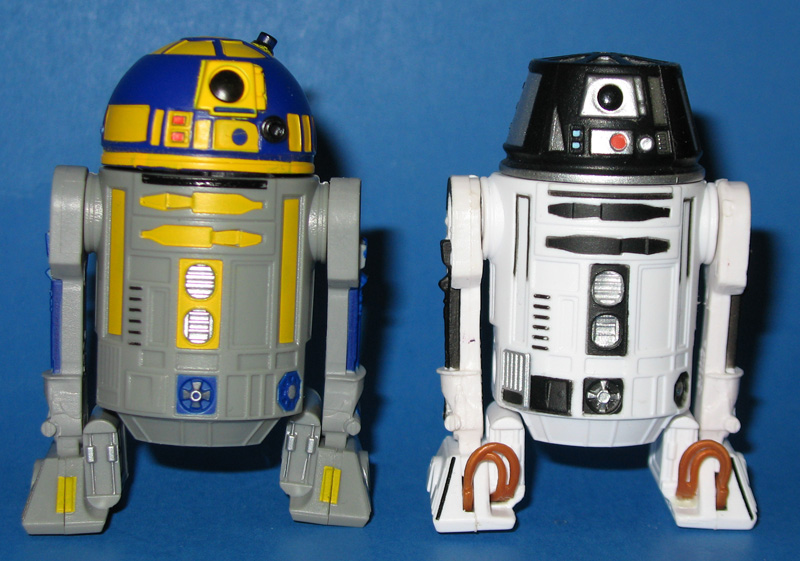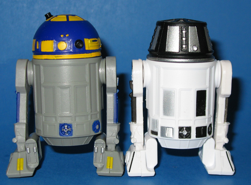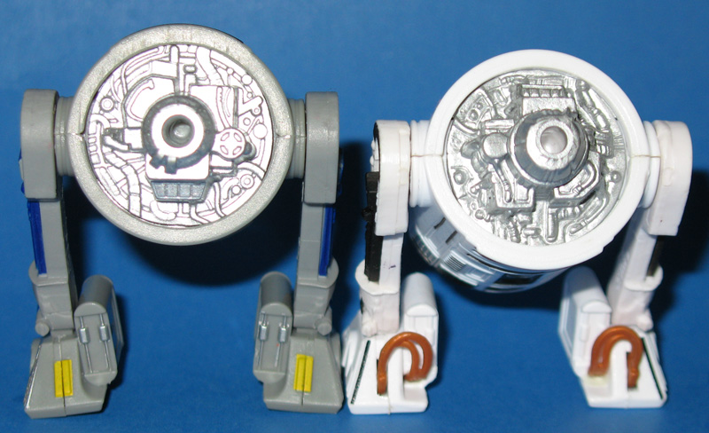 All three legs have a wheel in the bottom and on most of mine, they roll better than the previous Droid Factory figures I compared them to. The new R5-G19 figure has decent wheels also so it’s not necessarily and improvement by Disney over what Hasbro has given us.
