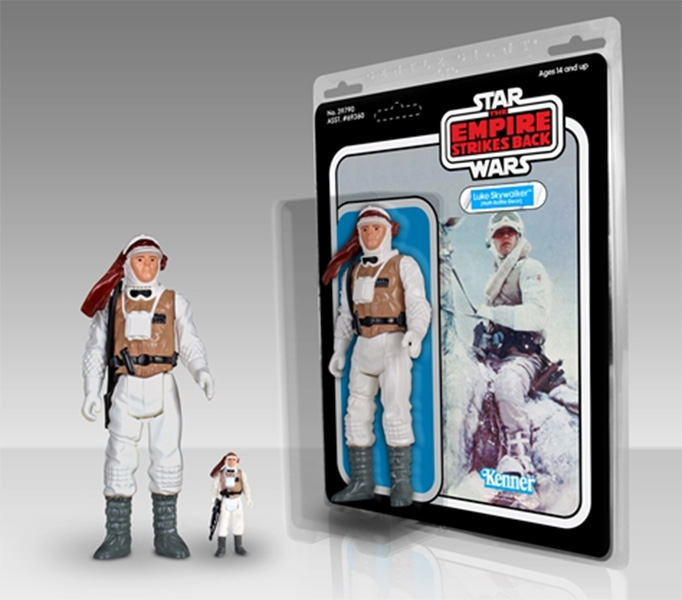 Next we have the Jumbo release of Luke Skywalker in his Hoth outfit. This was first offered as a free add-on to the Wampa pre-order for anyone ordering before October 14th. Now that that offer has expired, you can order Luke separately. As with the other Jumbo releases, Luke will come in blister packaging with The Empire Strikes Back insert. He’s due next year and is priced at $79.95.