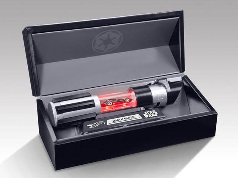 Although scans of Star Wars Insider #150 have been online, today is the official reveal of the San Diego Comic-Con Darth Vader character car from Hot Wheels. The car will come packed in a logo box with a Darth Vader lightsaber display that features lights and sounds.