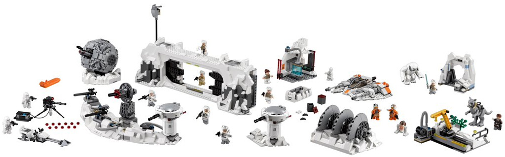 Assault on Hoth not only will include part of Echo Base and the shield generators but also a 2-seat Snowspeeder, Ion canon, Wampa cave, Tauntaun, and more. The list of minifigures include;
